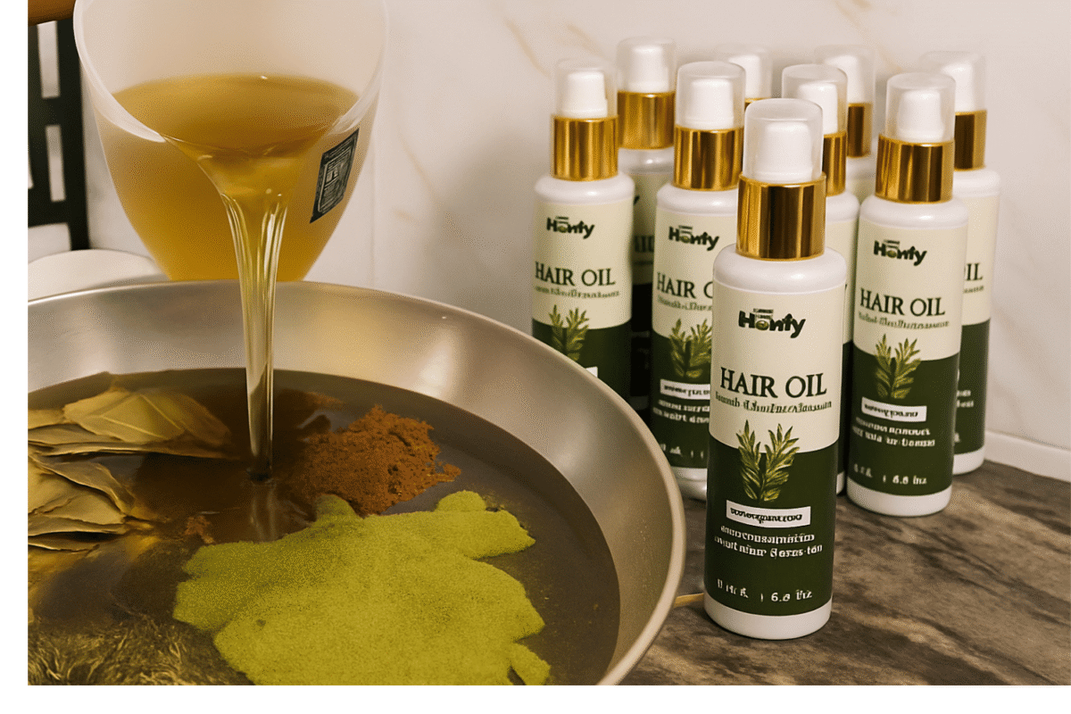 Hairly Aab-e-Zulf is crafted through slow herbal infusion, blending real botanicals into pure cold-pressed oils.